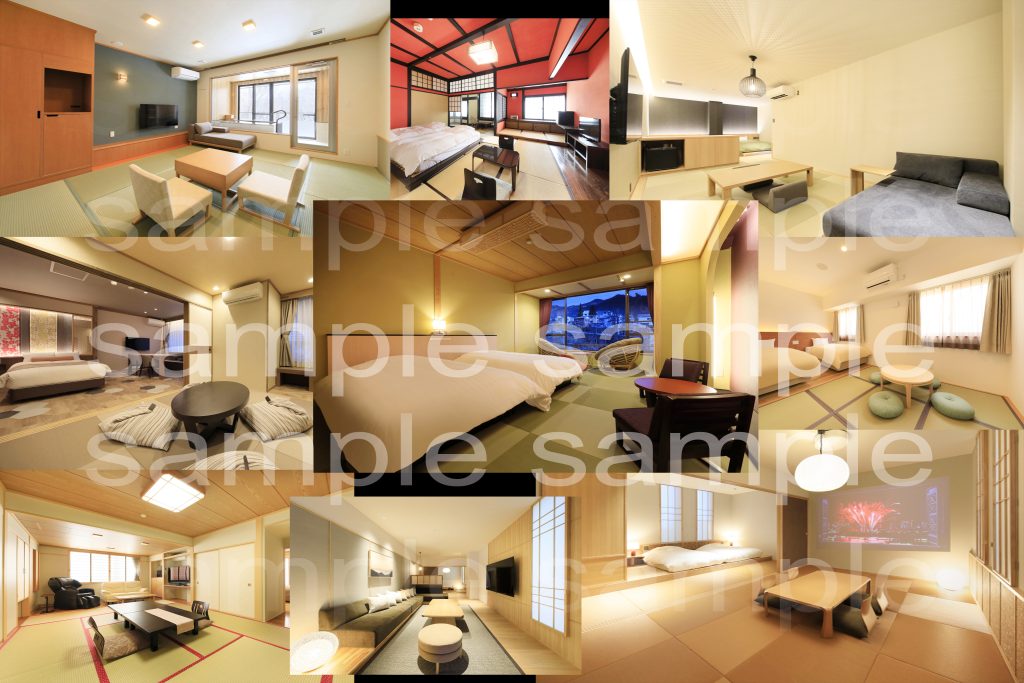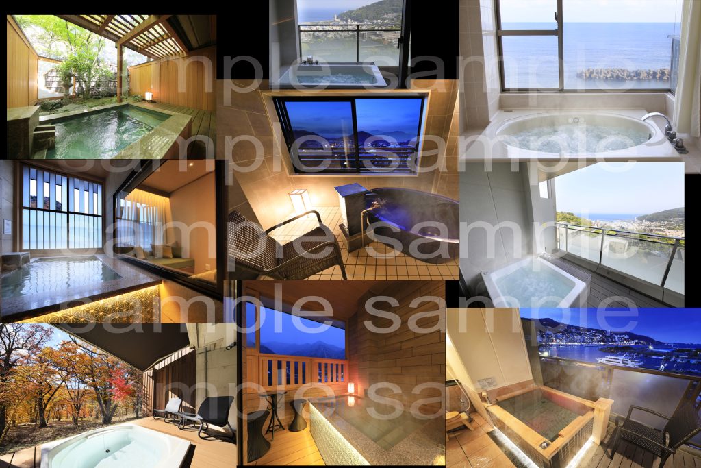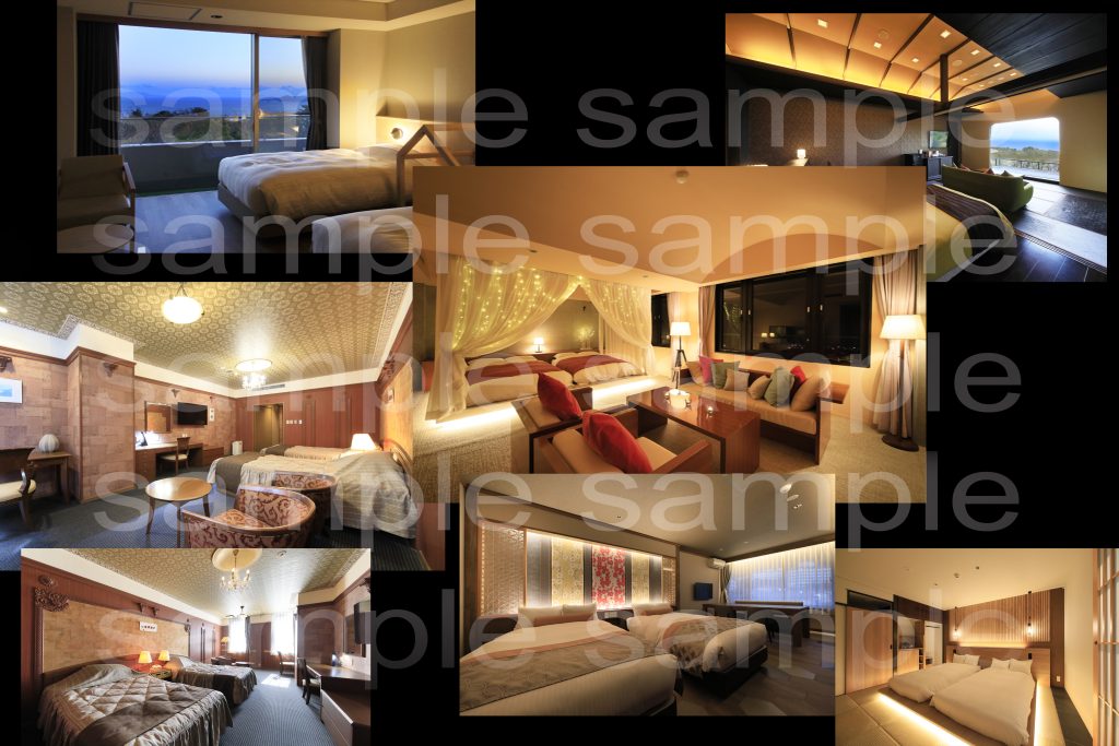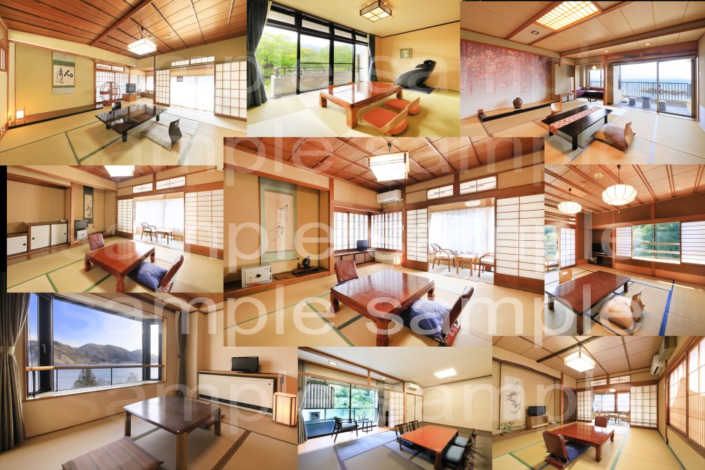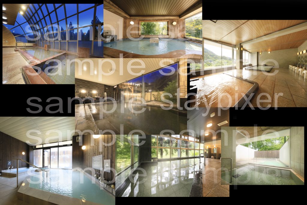 部屋全体2カット 露天風呂2カット 外の風景 水回り3カット 計8カット納品